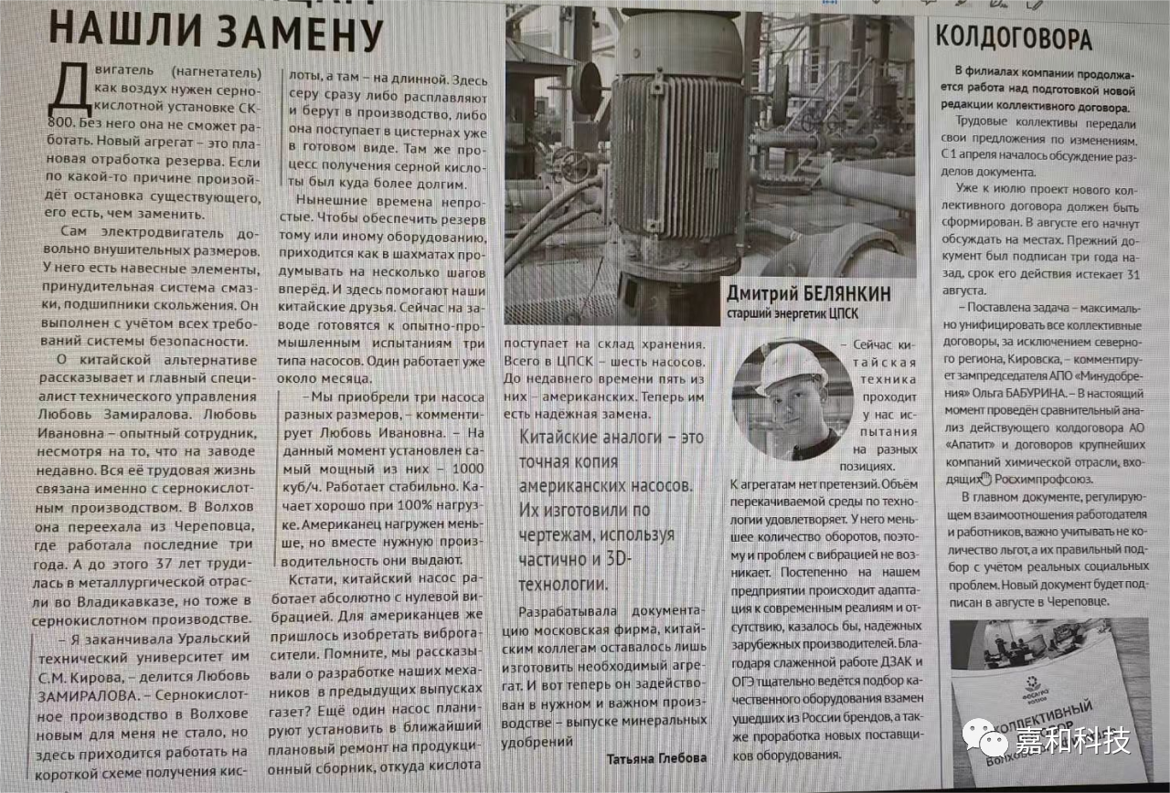 今年俄羅斯知名期刊上刊載了一篇文章,文章大致內(nèi)容是今年俄羅斯大型磷肥企業(yè)用三臺中國泵更換了三臺美國泵,經(jīng)過一段時間的運(yùn)用,這三臺來自中國的工業(yè)泵可靠性高,運(yùn)行穩(wěn)...