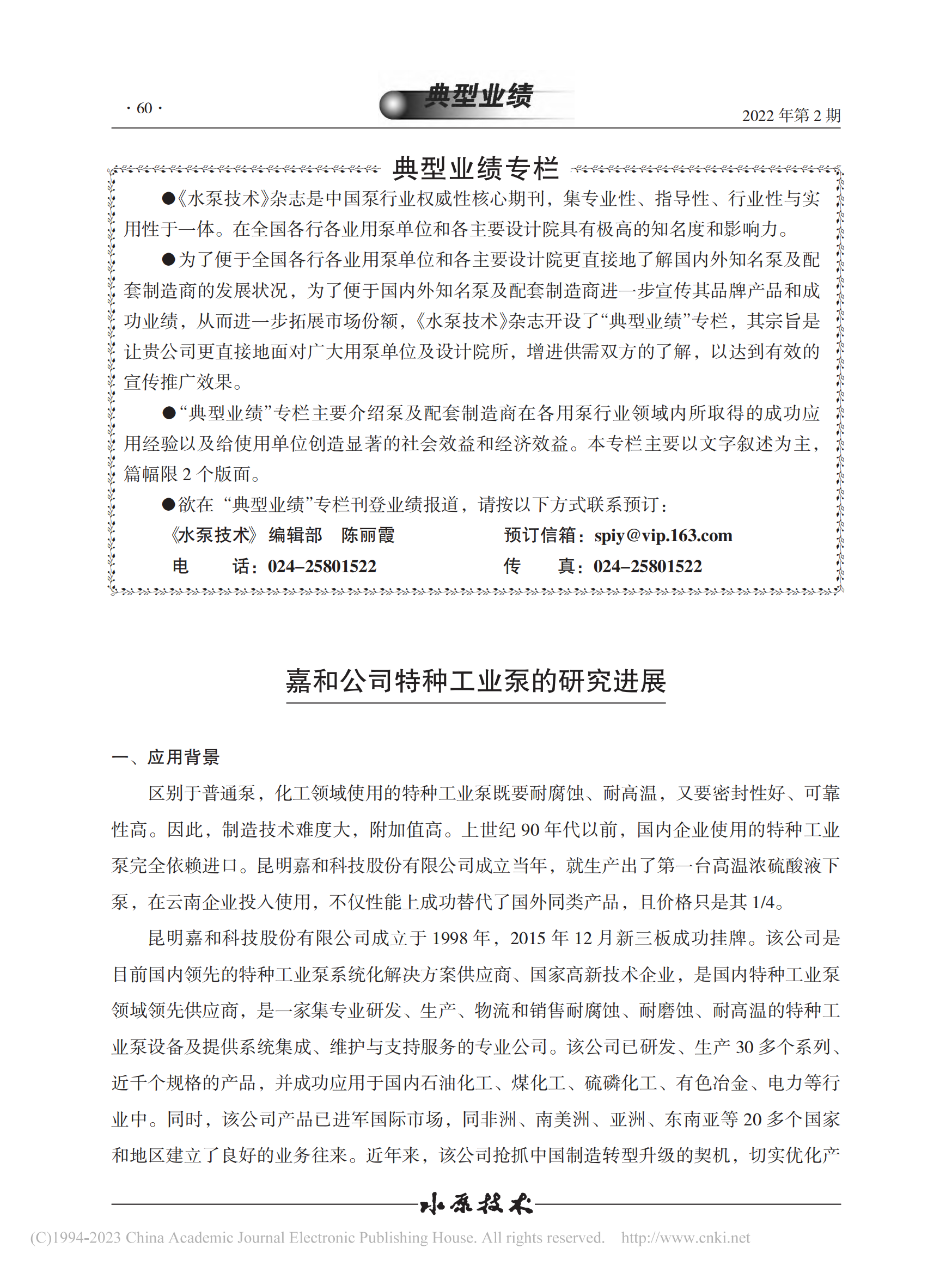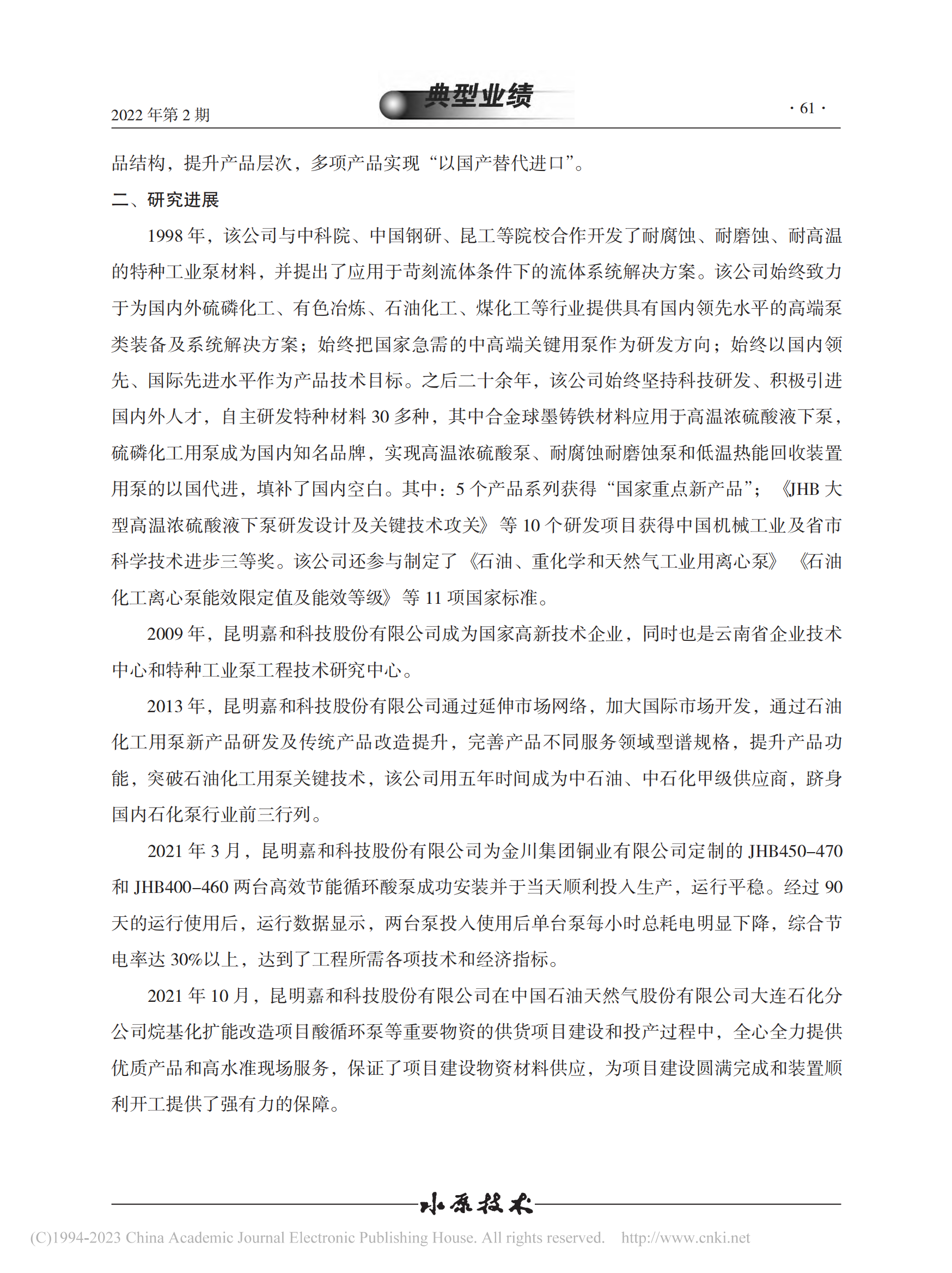 嘉和公司特種工業(yè)泵的研究進展